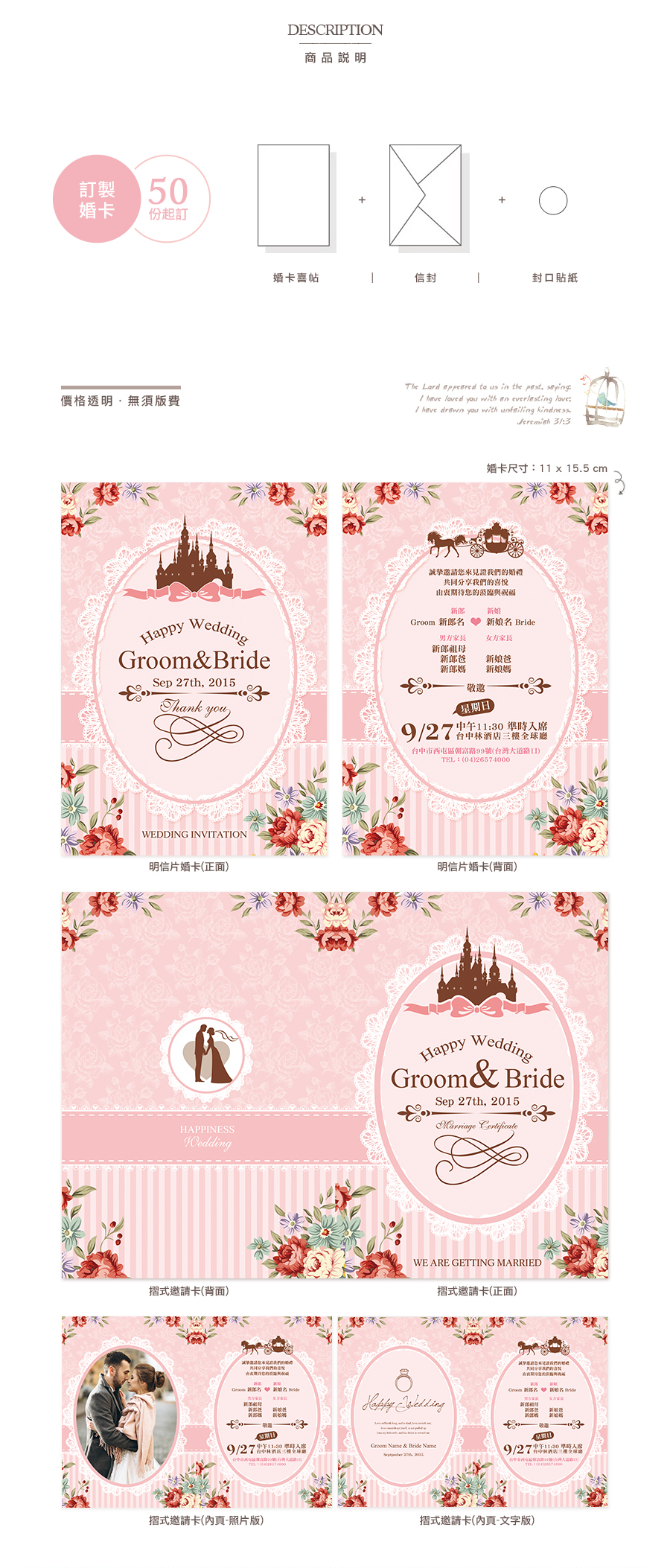 ☑ 可修改新人名字、宴客資訊及修改整體色系,不另酌收修改費