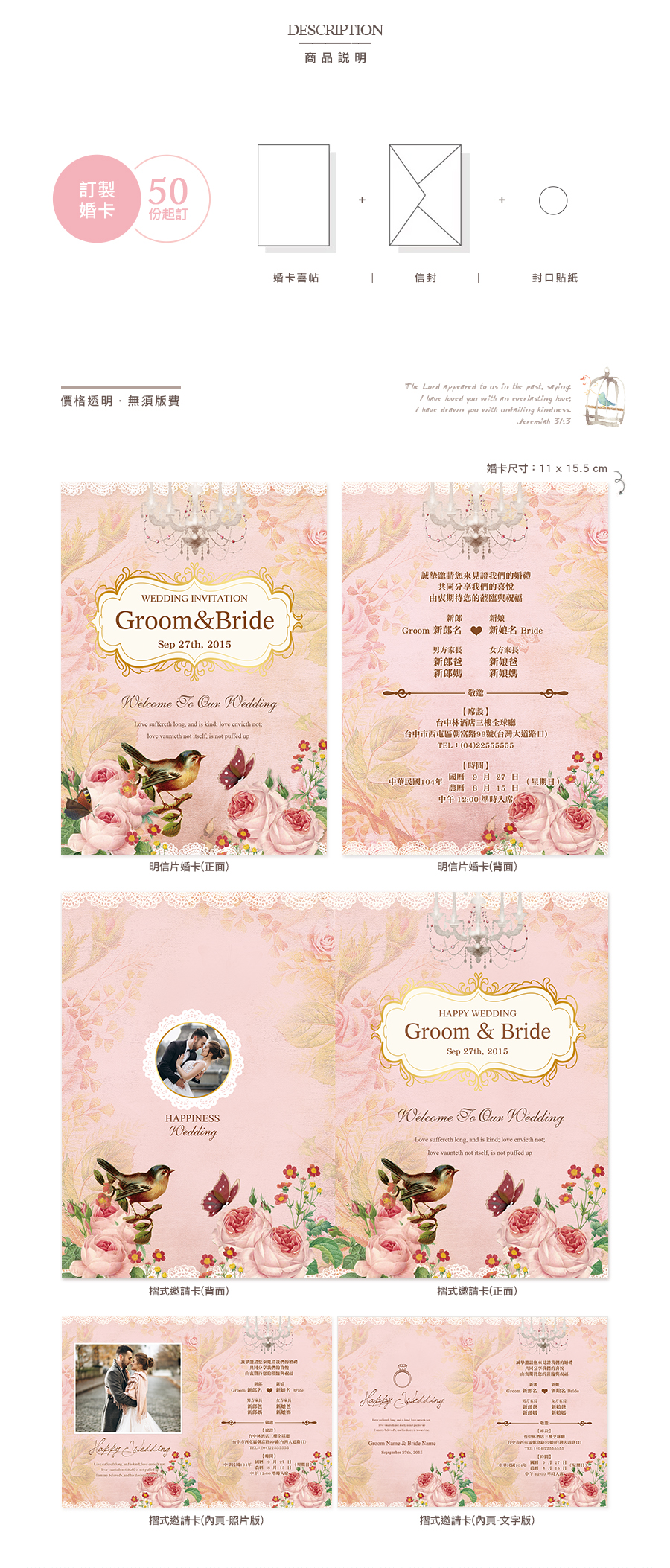 ☑ 若款式允許,亦可加入照片,不另酌收修改費