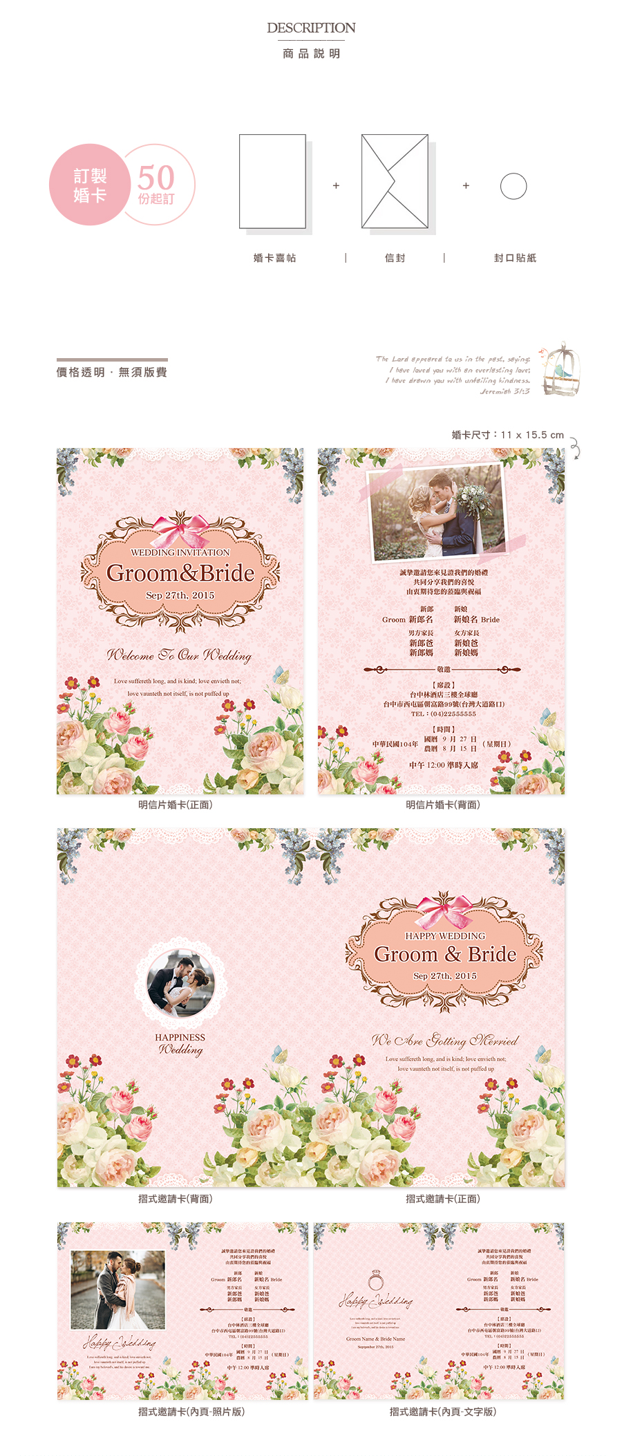 訂製明信片婚卡喜帖.編號MR07 法式拼貼 甜心粉.喜帖婚卡.贈信封及貼紙.喜帖免版費.少量喜帖印製.婚禮邀請卡 ╭*EternaLove