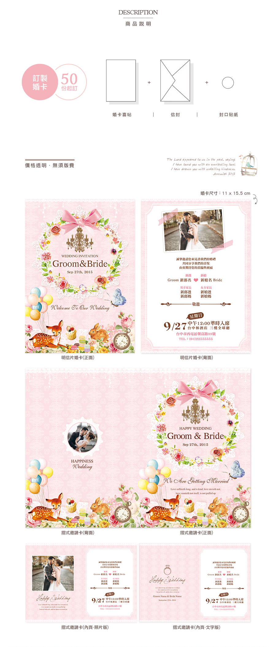 ☑ 可修改新人名字、宴客資訊及修改整體色系,不另酌收修改費