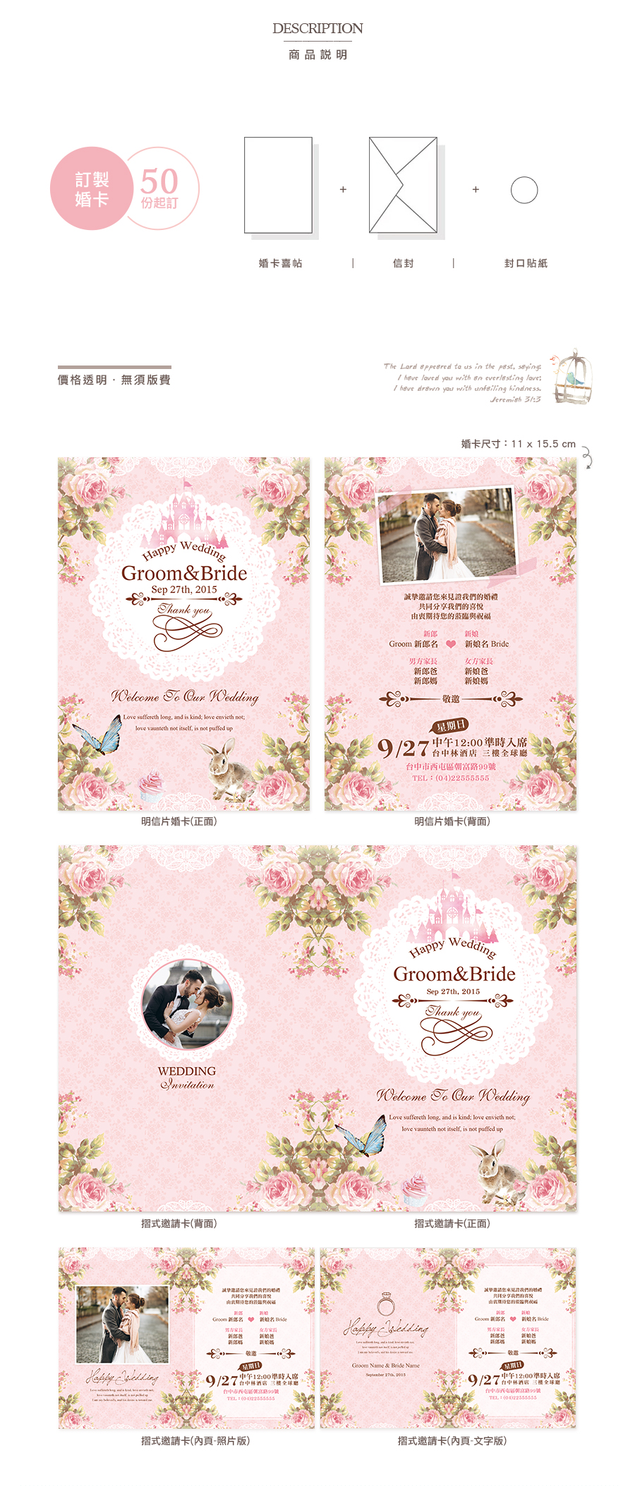 ☑ 可修改新人名字、宴客資訊及修改整體色系,不另酌收修改費