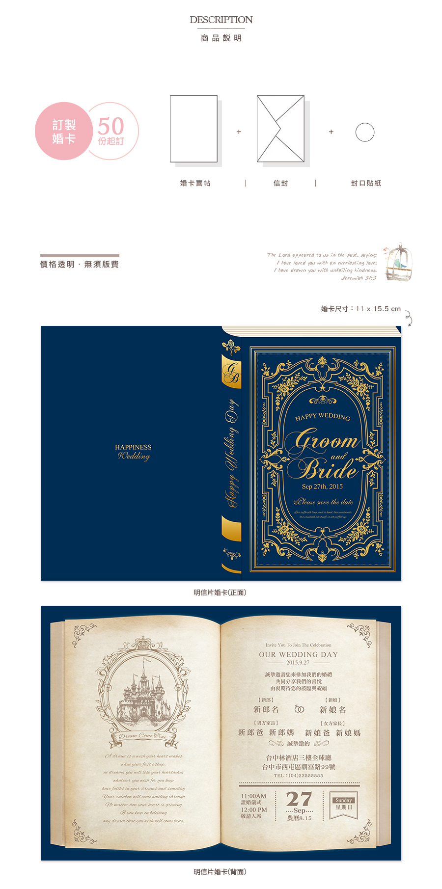 ☑ 可修改新人名字、宴客資訊及修改整體色系,不另酌收修改費