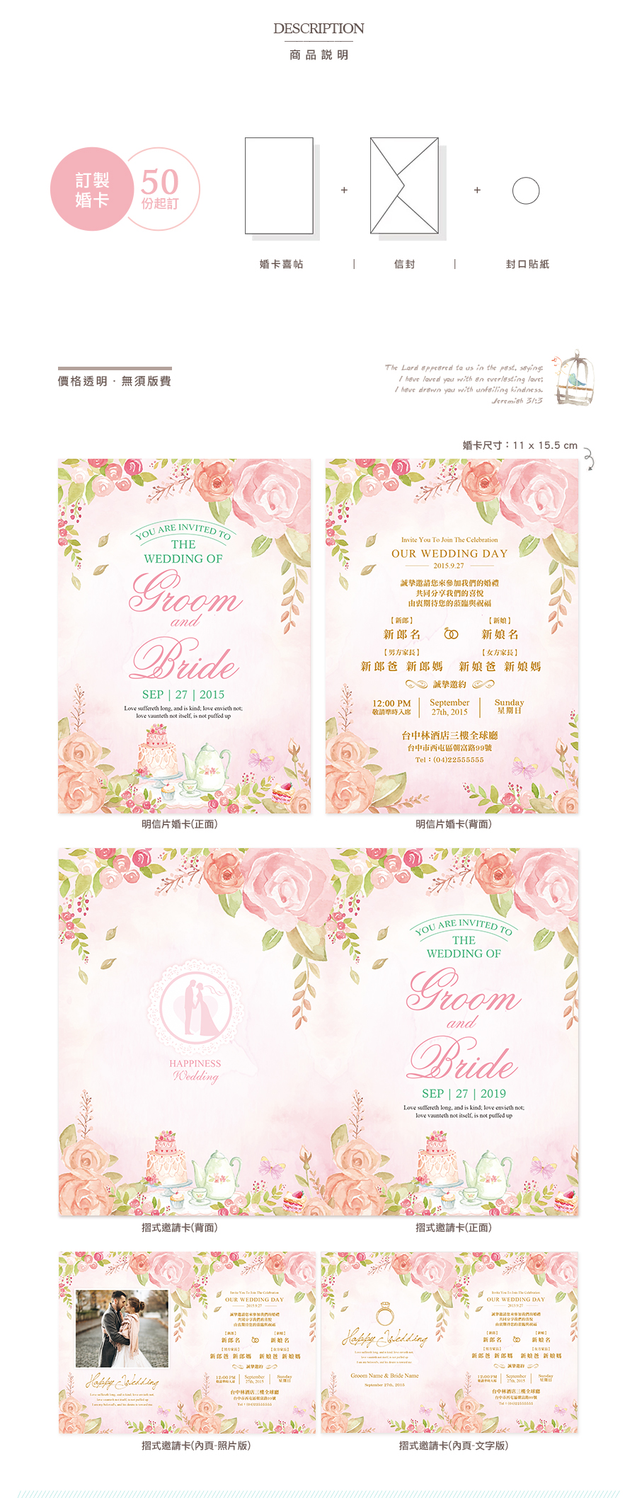 ☑ 可修改新人名字、宴客資訊及修改整體色系,不另酌收修改費
