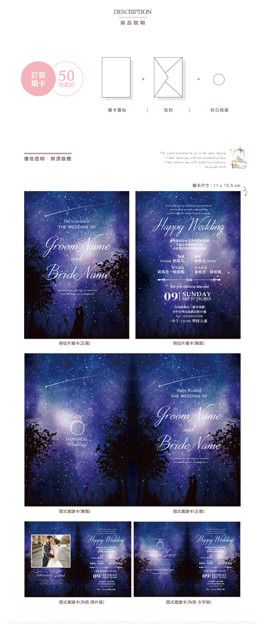訂製明信片婚卡喜帖.編號MR23 繁星滿天.喜帖婚卡.贈信封及貼紙.喜帖免版費.少量喜帖印製.婚禮邀請卡 ╭*EternaLove