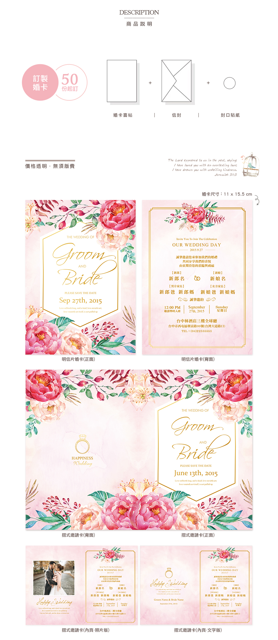 訂製明信片婚卡喜帖.編號MR25 繽紛花漾.喜帖婚卡.贈信封及貼紙.喜帖免版費.少量喜帖印製.婚禮邀請卡 ╭*EternaLove