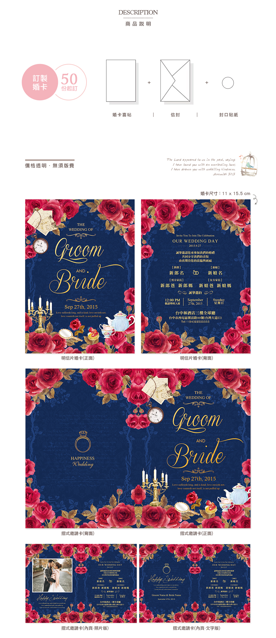 × 訂製明信片婚卡喜帖.編號MR28 美女野獸 午夜藍.喜帖婚卡.贈信封及貼紙.喜帖免版費.少量喜帖印製.婚禮邀請卡 ╭*EternaLove