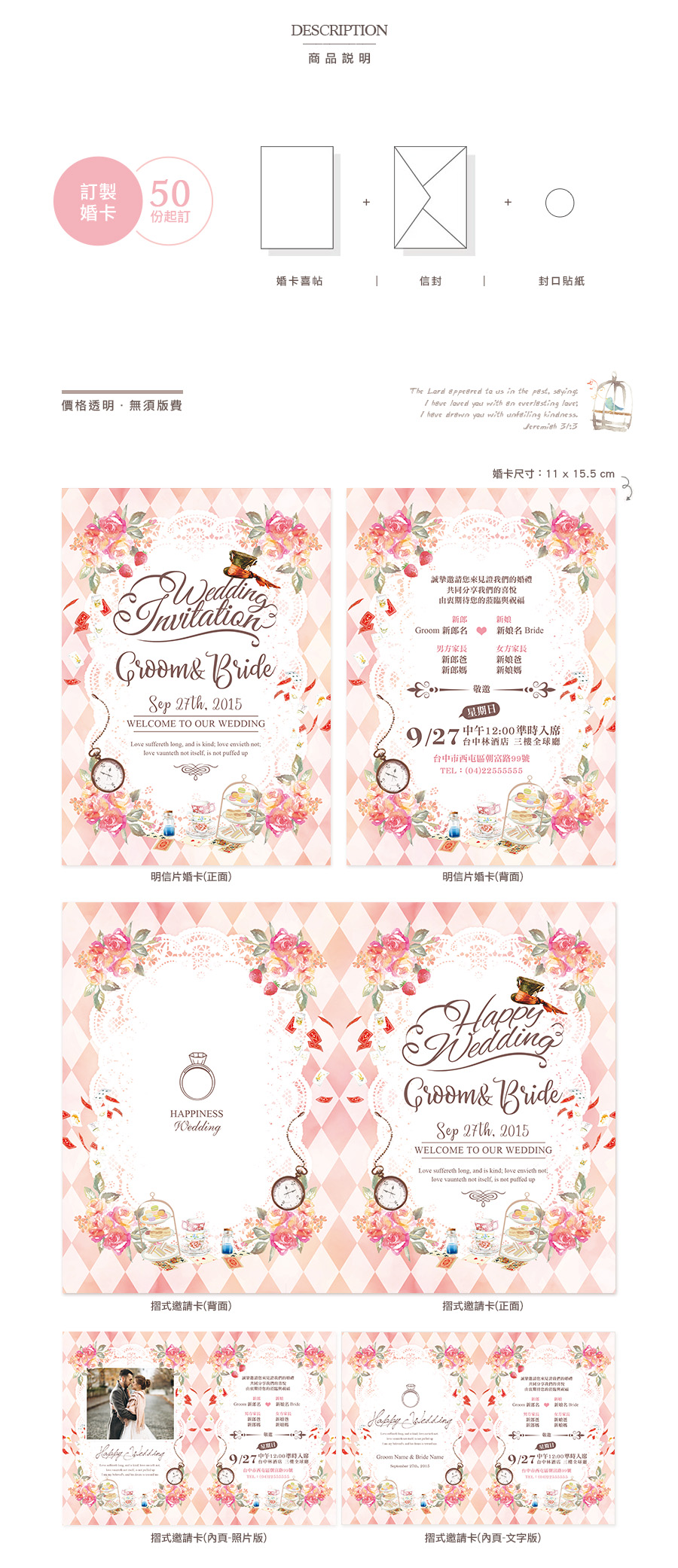 訂製明信片婚卡喜帖.編號MR32 夢遊仙境.愛麗絲夢遊仙境喜帖婚卡.贈信封及貼紙.喜帖免版費.少量喜帖印製.婚禮邀請卡 ╭*EternaLove