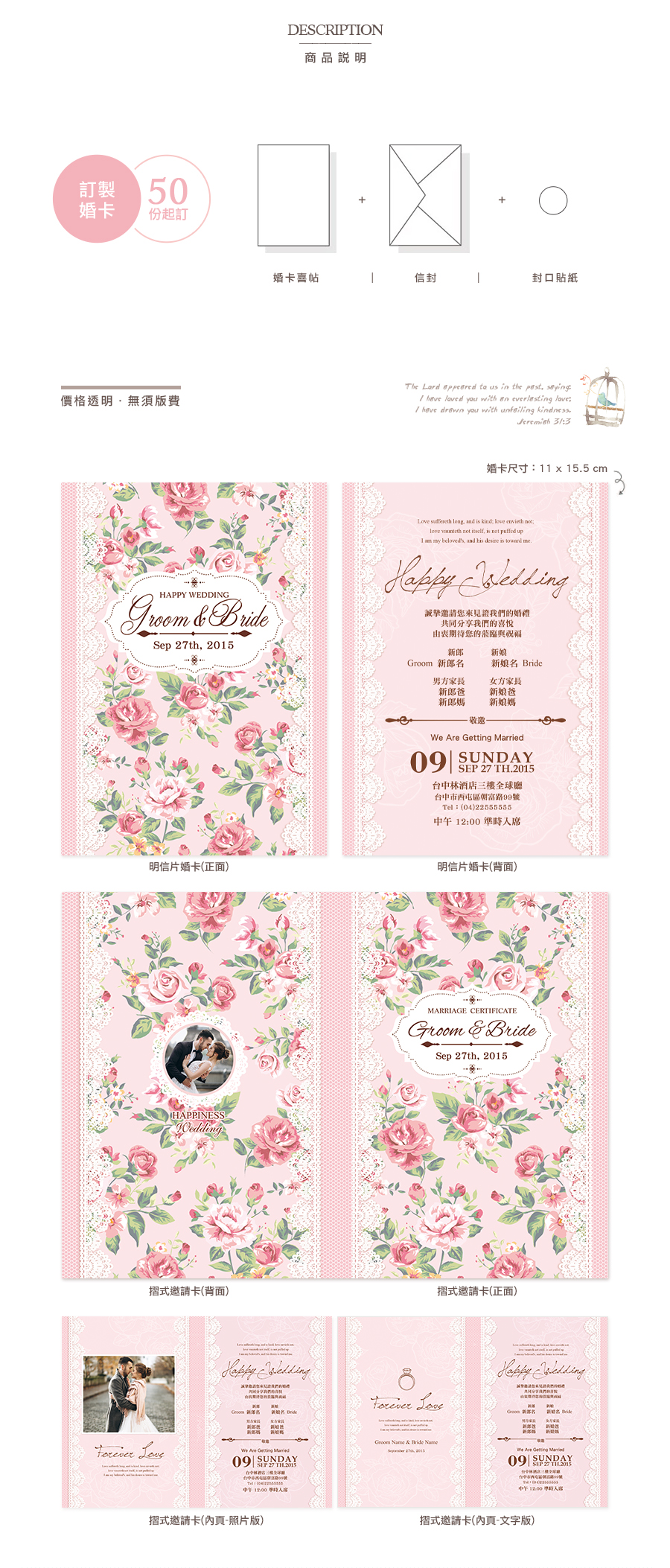 ☑ 若款式允許,亦可加入照片,不另酌收修改費