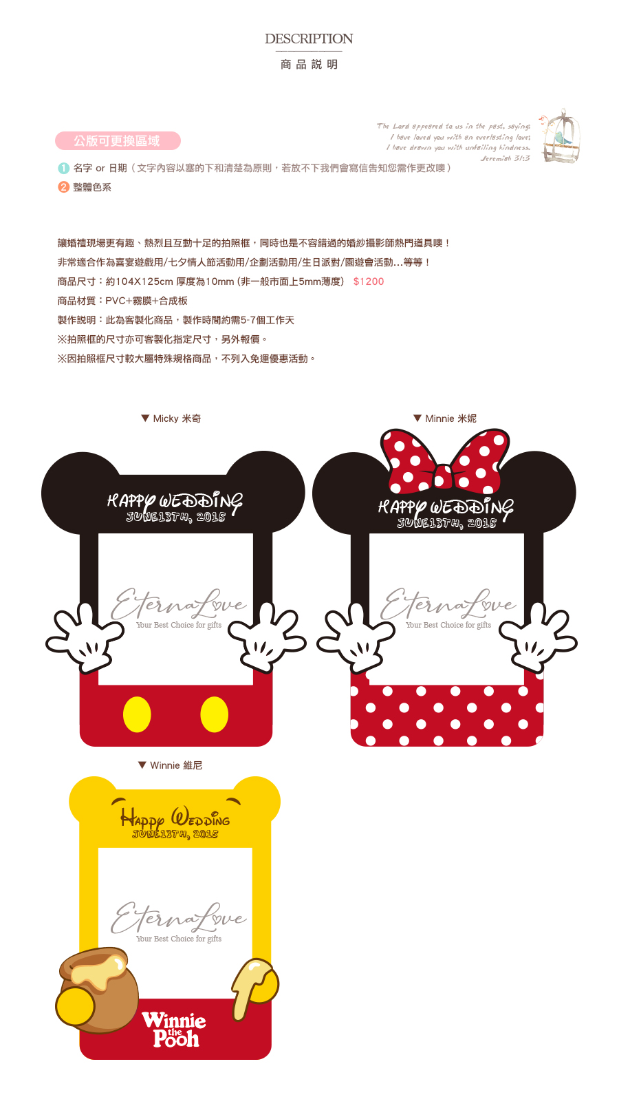 獨家創意款式.訂製小熊維尼拍照框 拍照板 趣味好玩 迪士尼 Winnie the Poo 手持拍照邊框 拍照道具 婚禮 尾牙 活動 畢業 開幕╭*EternaLove