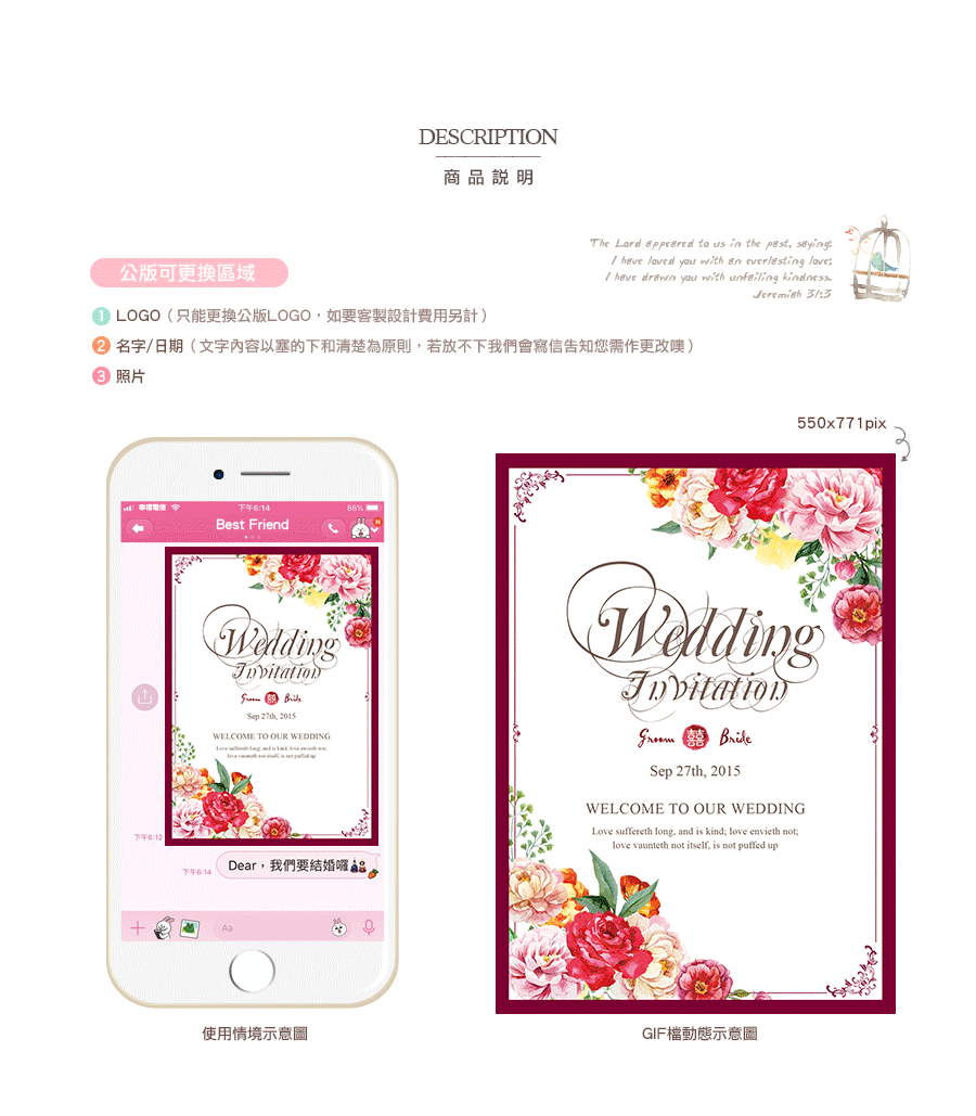 ☑ 可修改新人名字、宴客資訊,不另加版費