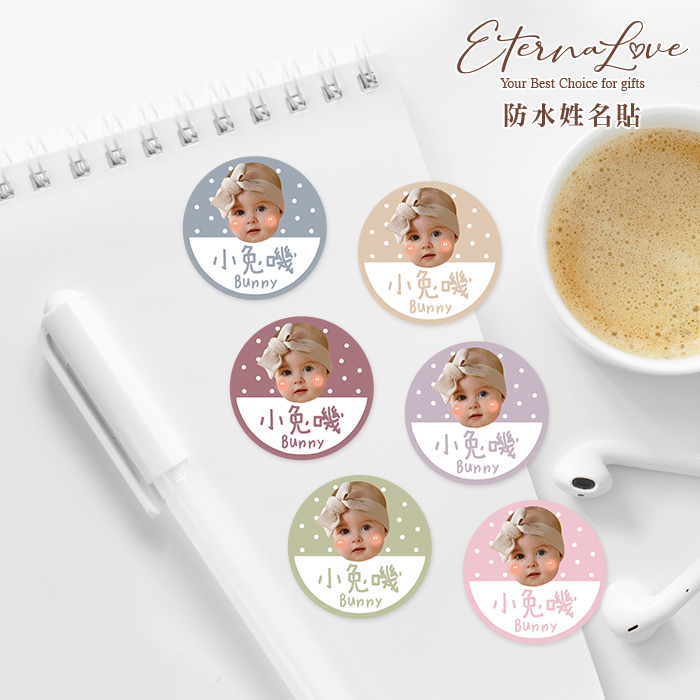 〃客製人像姓名貼〃波點照片姓名貼.防水姓名貼.手寫風姓名貼.幼兒園大頭貼.手繪風彌月貼.可愛生日貼.防水貼紙.寵物貼紙.圓形貼紙.開學必備.文具餐具.幼兒園必備╭*EternaLove